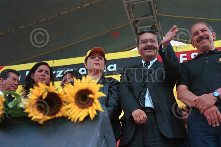 La explanada del Zócalo capitalino durante el cierre de campaña del Partido de la Revolución Democrática, realizado esta mañana. FOTO: Moisés Pablo/CUARTOSCURO.COM