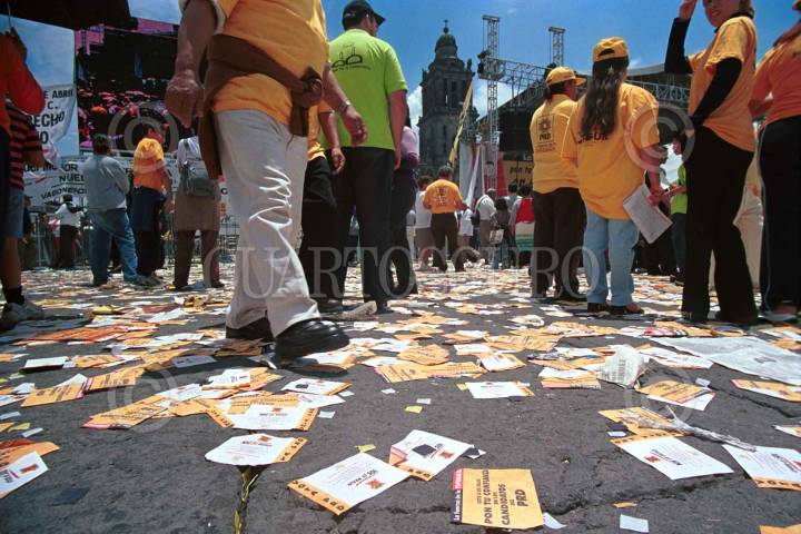 La explanada del Zócalo capitalino durante el cierre de campaña del Partido de la Revolución Democrática, realizado esta mañana. FOTO: Moisés Pablo/CUARTOSCURO.COM