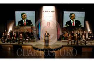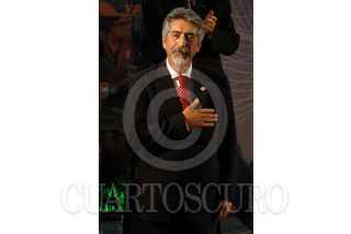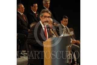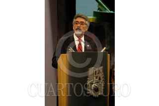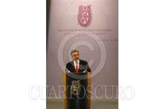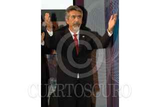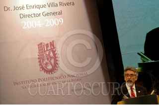MÉXICO D.F., 10NOVIEMBRE2009.- El Dr. José Enrique Villa Rivera, director general del Instituto Politecnico Nacional grita un "huelum" al termino de su informe de la administración 2004 - 2009 que se realizo en el auditorio Jaime Torres Bodet en Zacatenco. FOTO: RODOLFO ANGULO/CUARTOSCURO.COM