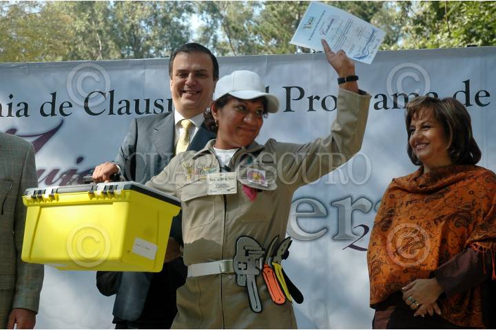 MÉXICO, D.F., 20NOVIEMBRE2009. 800 mujeres plomeras recibieron de parte del jefe de gobierno Marcelo Ebrard, constancias de capacitación y herramientas para su nuevo oficio. FOTO: RODOLFO ANGULO/CUARTOSCURO.COM