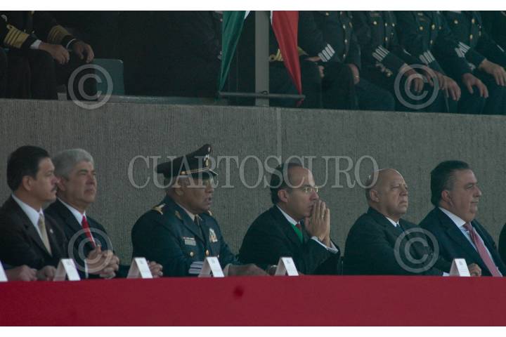 MÉXICO, D.F., 20NOVIEMBRE2009.- Guillermo Ortiz Mayagoitia, ministro presidente de la Suprema Corte de Justicia de la Nación; Fernando Gómez Mont; Secretario de Gobernación, Mariano Francisco Saynez Mendoza; Secretario de Marina Armada de México; Guillermo Ortiz, presidente del Banco de México, Eduardo Sojo Garza-Aldape; Secretario de Economía montaron una guardia de honor en el homenaje a Francisco I. Madero en la Residencia oficial de Los Pinos con motivo del aniversario de la revolución mexicana. FOTO: IVAN STEPHENS/CUARTOSCURO.COM