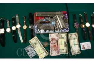 MÉXICO, D.F., 20NOVIEMBRE2009.- Elementos de la Procuraduria de Justicia del Distrito Federal, presentaron ante los medios de comunicación a Silvia Ramirez Jurado quien confeso haber asesinado a su su esposo Miguel Ruiz Arrollo de 58 años trabajador social a victimas de la PGR. En el lugar de los hechos se decomisó una arma, relojes, dolares y dinero en efectivo. FOTO: SAÚL LÓPEZ/CUARTOSCURO.COM