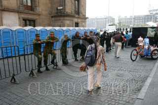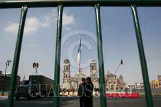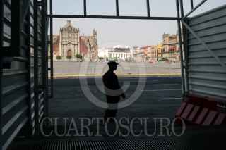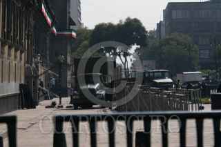MÉXICO D.F., 20NOVIEMBRE2009.- Elementos del Estado Mayor Presidencial y de la Policía Federal, resguardan las inmediaciones del Zócalo, esto por los preparativos del desfile que se realizara el día de mañana y con el cual se conmemora 99 Aniversario de la Revolución Mexicana. FOTO: GUILLERMO PEREA/CUARTOSCURO.COM