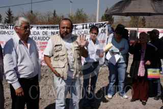 MÉXICO, D.F., 20NOVIEMBRE2009.- Norberto Solis Cruz, diputado del Partido Verde Ecologista de México en la Asamblea Legislativa, asistió a la denuncia de ejidarios contra los hechos que realizó Juan Carlos Leyte Chavarria, comisionado ejidal, en San Francisco Tlaltenco por permitir tirar cascajo y residuos de la Linea 12 del Metro en terrenos ejidales y contaminar su tierra que son reserva ecologica. FOTO: ESSENE HERNÁNDEZ/CUARTOSCURO.COM