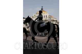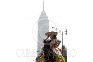 MÉXICO, D.F., 21NOVIEMBRE2009.- El desfile conmemorativo del 99 Aniversario de la Revolución Mexicana, comenzó en explanada del Zócalo y terminó en la Puerta de los Leones del Bosque de Chapultepec, con la participación de jinetes de la Secretaría de la Defensa Nacional, la Asociación Mexicana de Charrería, agrupamientos a caballo y carros alegoricos. FOTO: ESSENE HERNÁNDEZ/CUARTOSCURO.COM