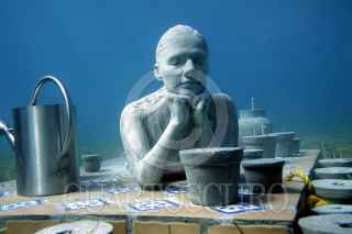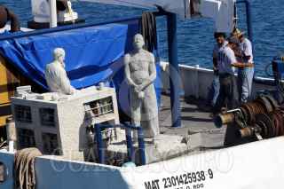 CANCUN, QUINTANA ROO, 21NOVIEMBRE2009.- Hoy se comenzó a sumergir las esculturas de cemento que formarán parte del museo subacuático más grande del mundo, que tendrá en total 400 piezas. Se trata de una interesante apuesta en el caribe mexicano que se ubicará en el Parque Nacional Costa Occidental de Isla Mujeres, Punta Cancún y Punta Nizuc, para que de esa manera parte de los casi 300.000 turistas que visitan la zona al año reduzcan la presión sobre los hábitats naturales. Las esculturas son de un cemento especial que permitirán que rápidamente sean colonizadas por los organismos del mar, es decir que será la naturaleza la que complete las obras escultóricas, y desde luego que será el paraíso de los buceadores. FOTO: AMARANTA PRIETO/CUARTOSCURO.COM