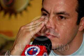 VERACRUZ, VERACRUZ. 21NOVIEMBRE 2009.- "Quiero llorar" Fueron las primeras palabras del delantero mexicano, Cuauhtémoc Blanco, al responder la primer pregunta durante la rueda de prensa ofrecida a los medios de comunicación después de haber sido presentado a la afición porteña en la cancha del estadio Luis "Pirata" de la Fuente. Blanco quien aun milita en el Chicago Fire de la MLS, vestirá el uniforme escualo el próximo "Torneo Bicentenario 2010". FOTO: JOSÉ CANDELARIO/CUARTOSCURO.COM