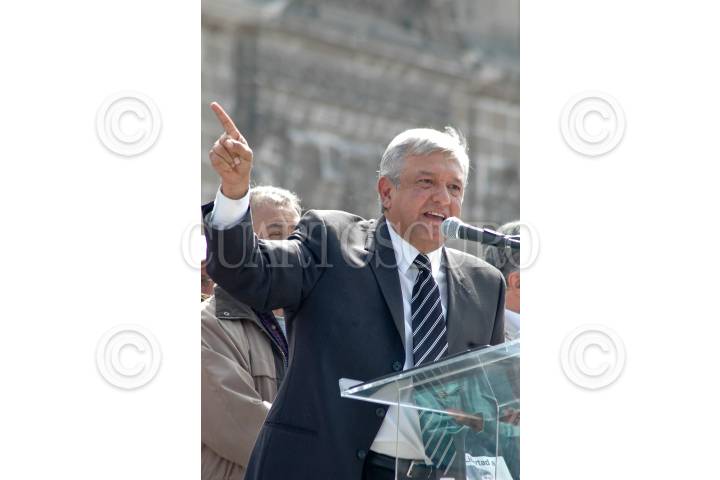 MÉXICO, D.F., 22NOVIEMBRE2009.- Andres Manuel López Obrador a su llegada a la asamblea informativa conmemorando tres años de iniciar la resistencia civil que se realizo en la plancha del Zócalo de la ciudad. FOTO: RODOLFO ANGULO/CUARTOSCURO.COM