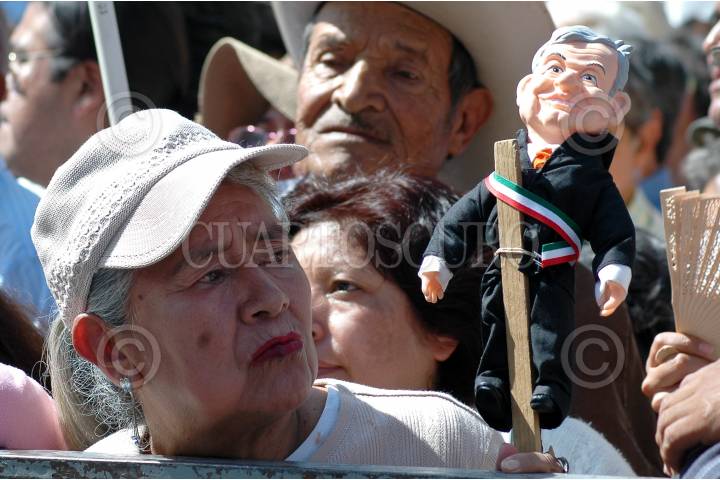 MÉXICO, D.F., 22NOVIEMBRE2009.- Andres Manuel López Obrador a su llegada a la asamblea informativa conmemorando tres años de iniciar la resistencia civil que se realizo en la plancha del Zócalo de la ciudad. FOTO: RODOLFO ANGULO/CUARTOSCURO.COM