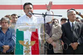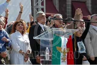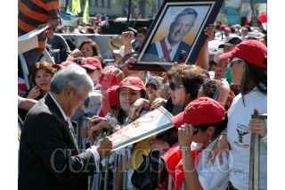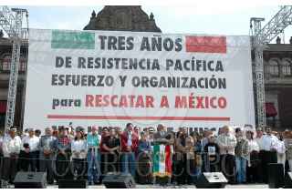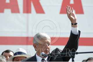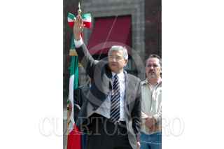 MÉXICO, D.F., 22NOVIEMBRE2009.- Andres Manuel López Obrador a su llegada a la asamblea informativa conmemorando tres años de iniciar la resistencia civil que se realizo en la plancha del Zócalo de la ciudad. FOTO: RODOLFO ANGULO/CUARTOSCURO.COM
