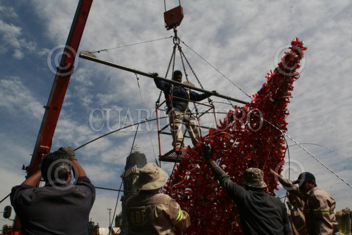 MÉXICO, D.F., 23NOVIEMBRE2009.- Trabajadores del gobierno del Distrito Federal comenzaron el montaje de adornos de navidad con motivo de las próximas fiestas decenbrinas. FOTO: ENRIQUE ORDÓÑEZ/CUARTOSCURO.COM
