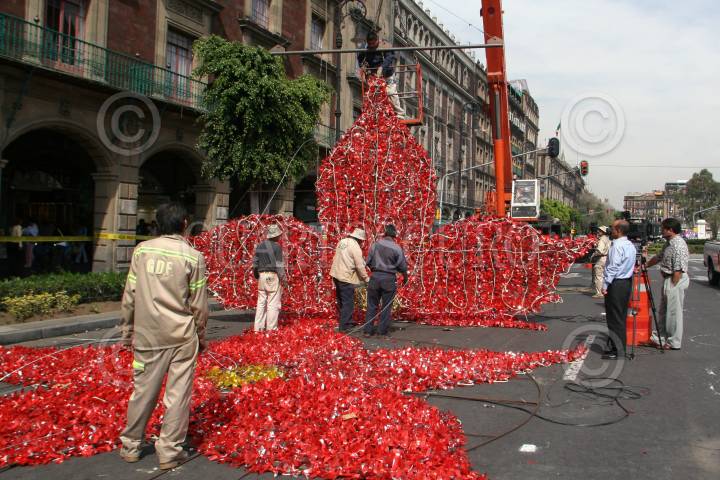 MÉXICO, D.F., 23NOVIEMBRE2009.- Trabajadores del gobierno del Distrito Federal comenzaron el montaje de adornos de navidad con motivo de las próximas fiestas decenbrinas. FOTO: ENRIQUE ORDÓÑEZ/CUARTOSCURO.COM
