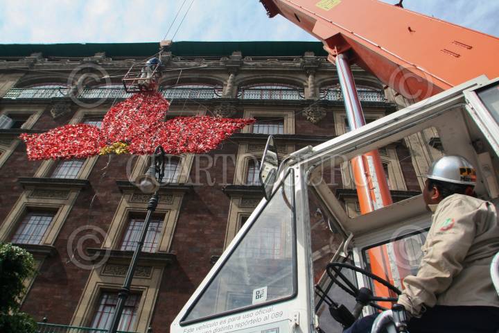 MÉXICO, D.F., 23NOVIEMBRE2009.- Trabajadores del gobierno del Distrito Federal comenzaron el montaje de adornos de navidad con motivo de las próximas fiestas decenbrinas. FOTO: ENRIQUE ORDÓÑEZ/CUARTOSCURO.COM
