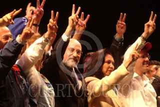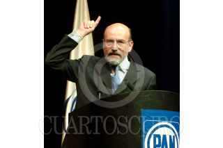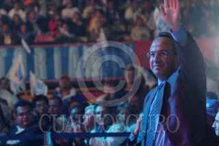 Luis Felipe Bravo Mena y candidatos del PAN a puestos de elección popular leventan la V de la victoria al cierre de sus campañas. FOTO: Nelly Salas/CUARTOSCURO.COM
