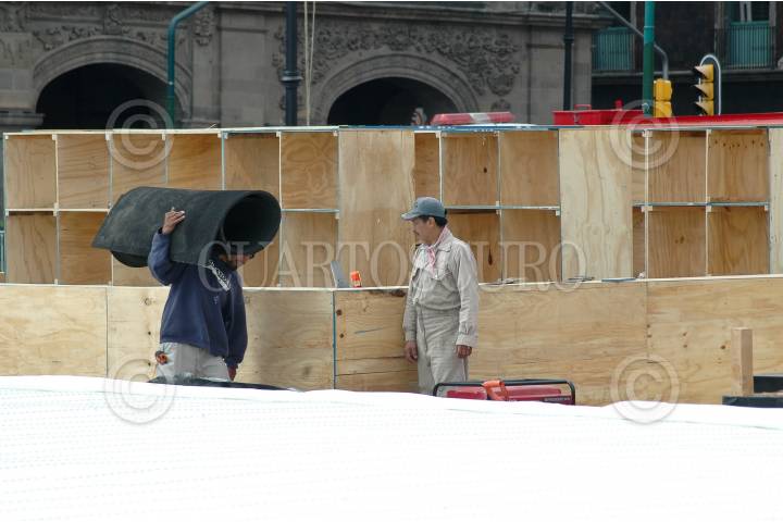 MÉXICO, D.F., 25NOVIEMBRE2009.- Trabajadores del gobierno del Distrito Federal continúan montando la pista de hielo y demás atracciones para la temporada invernal en el Zócalo de la ciudad. FOTO: FOTO: RODOLFO ANGULO/CUARTOSCURO.COM