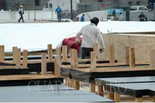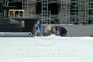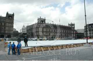MÉXICO, D.F., 25NOVIEMBRE2009.- Trabajadores del gobierno del Distrito Federal continúan montando la pista de hielo y demás atracciones para la temporada invernal en el Zócalo de la ciudad. FOTO: FOTO: RODOLFO ANGULO/CUARTOSCURO.COM