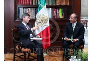 MÉXICO, D.F. 25NOVIEMBRE2009. Felipe Calderón Hinojosa, Presidente de México se reunió esta tarde en la residencia Oficial de los Pinos con el Sñr. Jefreey Sachs reconocido economista estadounidense, egresado de la universidad de Harvard, actualmente es director The Earth Institute de la Universidad de Columbia y director del proyecto del milenio de las Naciones Unidas. FOTO: ALFREDO GUERRERO/CUARTOSCURO.COM
