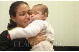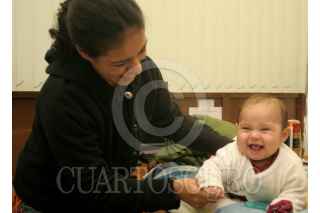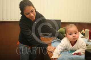 CUAUTITLAN IZCALLI, ESTADO DE MÉXICO, 26NOVIEMBRE2009.- Denise Flores Bustos de 20 años, recibe a su pequeña Vivian de siete meses de edad, después de que le fue robada desde el pasado lunes en el estado de Guerrero. La entrega se llevó a cabo en el Centro de Justicia de este municipio debido a que la plagiaria Laura Flores Huerta fue capturada en calles de la colonia Atlanta ayer por la tarde. Las autoridades ministeriales señalaron que la presunta "robachicos" es tía abuela de la menor y que la había robado con la intención de llevarla a los Estados Unidos. FOTO: LUZ ACEVEDO/CUARTOSCURO.COM