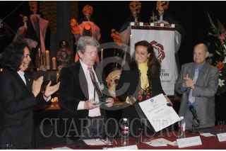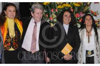 MÉXICO, D.F., 26NOVIEMBRE2009.- Carmen B. López-Portillo, Jorge Herralde, Consuelo Saízar, directora del CONACULTA y Sandra Lorenzano estuvieron presentes en la ceremonia de entrega de la presea Sor Juana Inés de la Cruz por parte de la Universidad del Claustro de Sor Juana a Jorge Herralde. FOTO: ARTURO LÓPEZ/CUARTOSCURO.COM