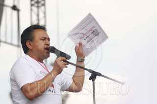 MÉXICO, D.F., 26NOVIEMBRE2009.- Martin Esparza entrego un reconocimiento al grupo El gran silencio durante el concierto llamado la Luz con la Fuerza, en Ciudad Universitaria. FOTO: SÁSHENKA GUTIÉRREZ/CUARTOSCURO.COM