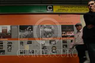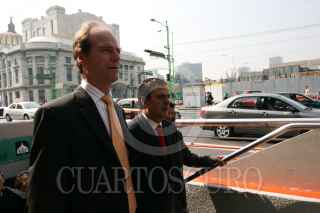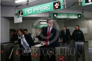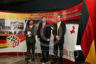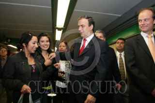 MÉXICO D.F., 27NOVIEMBRE2009.- Marcelo Ebrad Casaubón, Jefe del Gobierno Capitalino, al termino de la inauguración la Exposición “Mapa Mexicano de voces, memorias y arte por el 20 Aniversario de la caída del Muro de Berlín” esto en la estación del metros Bellas Artes. FOTO: GUILLERMO PEREA/CUARTOSCURO.COM