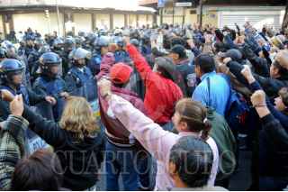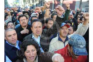 MEXICO D.F., 29NOVIEMBRE2009.- Miembros y simpatizantes del Sindicato Mexicano de Electricistas (SME) encabezados por Martin Esparza se manifestaron en calles aledañas al Zocalo al mismo tiempo que en Palacio Nacional se desarrollaba un evento del presidente Felipe Calderon. Elementos del cuerpo de granaderos les bloquearon el paso en la avenida 20 de Noviembre y Venustiano Carranza y cuando se retiraron aventaron huevos a los uniformados. FOTO: IVAN MENDEZ/CUARTOSCURO.CIOM