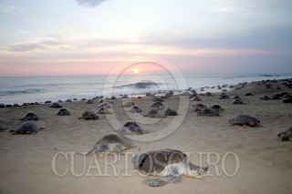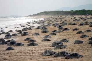 AQUILA, MICHOACÁN, 29NOVIEMBRE2009.- Una mega arribazón de tortugas golfinas, gigantesca, nunca vista, fue la que ocurrió en la playa de Ixtapilla en el municipio de Aquila, misma que fue calificada por los indígenas nahuas voluntarios del campamento tortuguero, como “la madre de todas las arribazones” registradas en esa marina de este municipio. Los quelonios de la especie Lepidochelys olivacea o golfina, como mejor se les conoce, iniciaron su arribazón, que llenaron por completo su playa de aproximadamente 800 metros de largo, extendiéndose el varamiento hacia La Majahuita y otras marinas cercanas cuyas arenas en muy corto tiempo fueron saturadas de nidos de tortugas repletos de huevos. La playa de Ixtapilla está ubicada a bordo de carretera en el kilómetro 180 de la costera de Michoacán. FOTO: ANGEL MÉNDEZ/CUARTOSCURO.COM