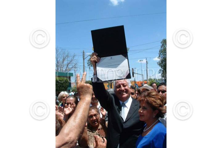 Juan Dibildox, presidente de Consejo Estatal Electoral entregó la carta de mayoría al gobernador electo, Marcelo De los Santos Fraga, quien posteriormente mostró el documento al público que se encontraba afuera de las oficinas. Foto: Marcelo Palacios/CURTOSCURO.COM