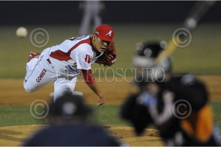 MAZATLAN, SINALOA, 01DICIEMBRE2009.- Walter Ibarra, de los Naranjeros de Hermosillo, durante el out a Ruben Rivera de los Venados de Mazatlan, durante el encuentro correspondiente a la segunda vuelta de la Liga Mexicana del Pacífico entre los Venados de Mazatlan y los Naranjeros de Hermosillo en el estadio Teodoro Mariscal. FOTO: JORGE OSUNA/CUARTOSCURO.COM