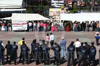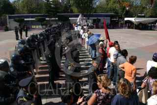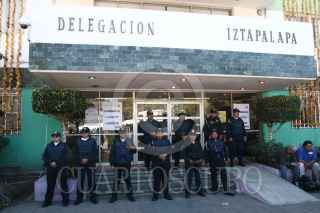 MÉXICO, D.F., 02DICIEMBRE2009.- Elementos de Seguridad Pública mantienen resguardada la sede delegacional de Iztapalapa ante un posible enfrentamiento entre simpatizantes de Rafael Acosta "Juanito y de Clara Brugada. FOTO: SAUL LOPEZ/CUARTOSCURO.COM