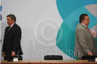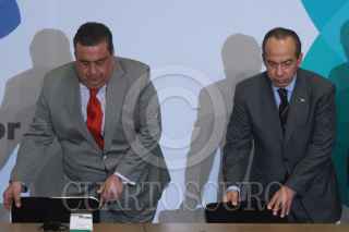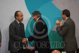 MÉXICO, D.F., 02DICIEMBRE2009.- Felipe Calderon Hinojosa Presidente de México asu salida del salon Adolfo Lopez Mateos de la residencia oficial de los Pinos, donde el mandatario mexicano realizó la clausura de la mesa redonda "La democracia de una encrucijada : el reto del financiamiento ilicito de la Politica" FOTO: SÁSHENKA GUTIÉRREZ/ CUARTOSCURO.COM