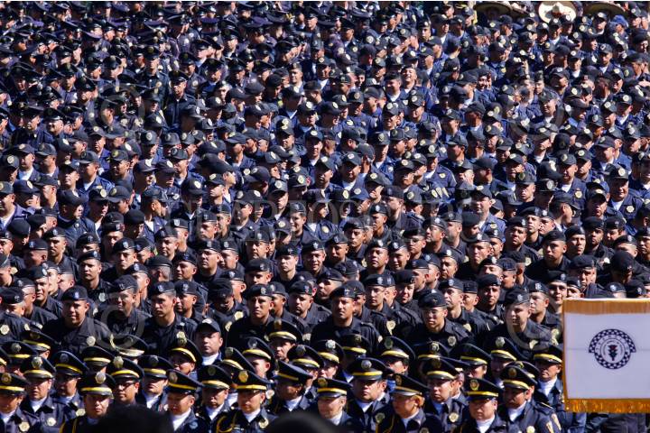 MÉXICO, D.F., 03DICIEMBRE2009.- Policías capitalinos que fueron ascendidos en las instalaciones de la Secretaría de Seguridad Públida local en la delegación Magdalena Contreras, son felicitados por sus familiares. FOTO: ISAAC ESQUIVEL/CUARTOSCURO.COM