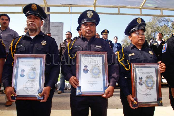 MÉXICO, D.F., 03DICIEMBRE2009.- Policías capitalinos que fueron ascendidos en las instalaciones de la Secretaría de Seguridad Públida local en la delegación Magdalena Contreras, son felicitados por sus familiares. FOTO: ISAAC ESQUIVEL/CUARTOSCURO.COM