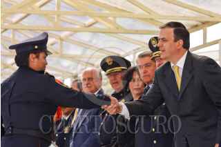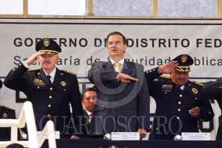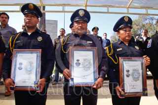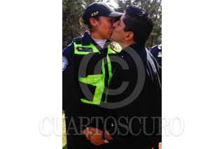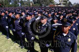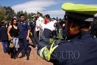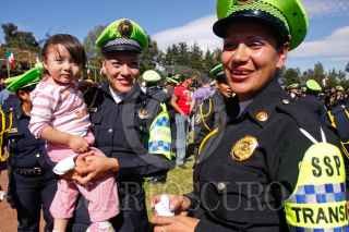MÉXICO, D.F., 03DICIEMBRE2009.- Policías capitalinos que fueron ascendidos en las instalaciones de la Secretaría de Seguridad Públida local en la delegación Magdalena Contreras, son felicitados por sus familiares. FOTO: ISAAC ESQUIVEL/CUARTOSCURO.COM