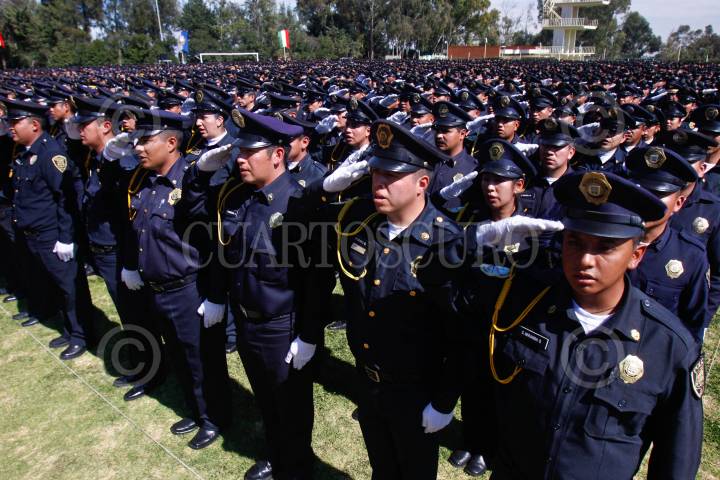 MÉXICO, D.F., 03DICIEMBRE2009.- Policías capitalinos que fueron ascendidos en las instalaciones de la Secretaría de Seguridad Públida local en la delegación Magdalena Contreras, son felicitados por sus familiares. FOTO: ISAAC ESQUIVEL/CUARTOSCURO.COM