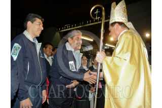 MÉXICO, D.F., 03DICIEMBRE2009.- La Unión de Expendedores y Voceadores de los Periodicos de México encabezados por su lider Raul Ramos acudieron en la 64a peregrinación a la Basilica de Guadalupe en donde fueron recibidos por el cardenal Norberto Rivera Carrera. FOTO: RODOLFO ANGULO/CUARTOSCURO.COM