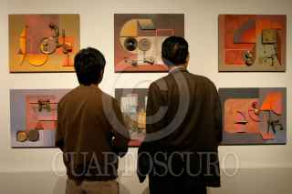 MÉXICO, D.F. 03DICIEMBRE2009.- En el Palacio de las Bellas Artes se inauguró la exposición "Invención constructiva" del artista plástico zacatecano Manuel Felguérez. FOTO: IVÁN STEPHENS/CUARTOSCURO.COM