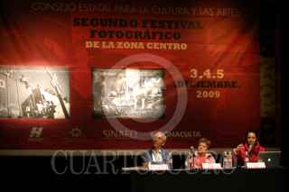 PACHUCA, HIDALGO, 04DICIEMBRE2009.- Durante el segundo Festival Fotógrafico, de la zona centro, organizado por el Instituo de Cultura del estado y que se realiza desde ayer en esta ciudad, el crítico y curador Armando Cristeto, y las fotografas Yolanda Andrade y Lourdes Almeida compartieron su experiencia con jóvenes becados y público en general. FOTO: MISAEL VALTIERRA/CUARTOSCURO.COM