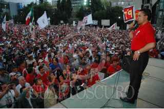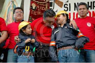 MÉXICO, D.F., 04DICIEMBRE2009.-Martin Esparza, lider del Sindicato Mexicano de Electricistas, habla ante cientos de trabajadores de la extinta Luz y Fuerza y de simpatizantes del SME durante un mitin en la explanada del Monumento a la Revolución. FOTO: RODO LFO ANGULO/CUARTOSCURO.COM