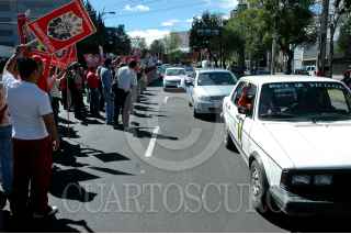 MÉXICO, D.F., 04DICIEMBRE2009.- Un grupo reducido de simpatizantes y miembros del Sindicato Mexicano de Electricistas marcharon desde el cruze de Constituyentes y Reforma con destino al Monumento a la Revolución como parte de las acciones de resistencia que realizan para exigir la derogación del decreto de extinción de Luz y Fuerza del Centro. FOTO: RODOLFO ANGULO/CUARTOSCURO.COM