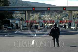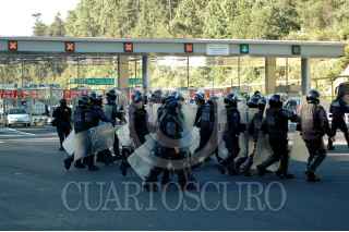 MÉXICO, D.F., 04DICIEMBRE2009.- Elementos de la Policía Federal resguardaron la caseta de cobro de México - La Marqueza debido a que simpatizantes y miembros del Sindicato Mexicano de Electricistas llegaron procedentes de Toluca y Michoacan con destino al Monumento a la Revolución como parte de las acciones de resistencia que realizan para exigir la derogación del decreto de extinción de Luz y Fuerza del Centro. FOTO: RODOLFO ANGULO/CUARTOSCURO.COM