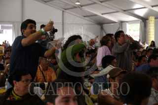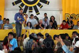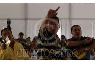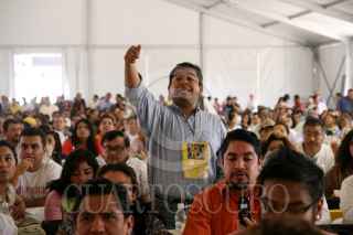 OAXTEPEC, MORELOS, 05DICIEMBRE2009.- Las inconformidades en las mesas de trabajos de Estatutos continúan dándose hasta con palabras altisonantes. En esta tarde varios integrantes de representes del Comité directivo estatal del PRD Tabasco y encabezado por Juan Manuel Focil tomaron las tribunas a gritos de "Sinverguenzas, vendidos, todo lo arreglan en lo oscurito". FOTO: MARCO POLO GUZMÁN HERNÁNDEZ/CUARTOSCURO.COM