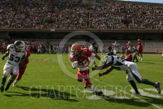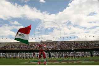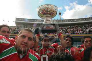MÉXICO, D.F., 05DICIEMBRE2009.- Jugadores del equipo de la Seleccion Mexicana de Futbol Americano festejan su victoria ante las Águilas de la Universidad Metodista del Centro de San Luis Missouri en el estadio de Ciudad Universitaria. FOTO: ENRIQUE ORDÒÑEZ/CUARTOSCURO.COM
