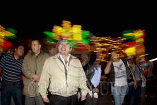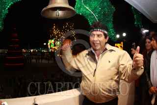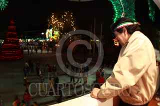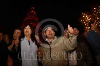 MÉXICO, D.F., 06DICIEMBRE2009.- Rafael Acosta "Juanito" jefe delegacional en Iztapalapa, acompañado por la directora general de Jurídico y Gobierno Alejandra Elizabeth Núñez León, durante el encendido del árbol navideño de la delegación. FOTO: SÁSHENKA GUTIÉRREZ/CUARTOSCURO.COM
