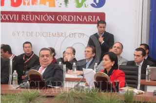 DURANGO, DURANGO, 07DICIEMBRE2009.- Fernando Gomez Mont, Secretario de Gobernación y Amalia Garcia, Gobernadora de Zacatecas durante la reunión de la CONAGO que se llevo a cabo en esta entidad. FOTO: CUARTOSCURO.COM