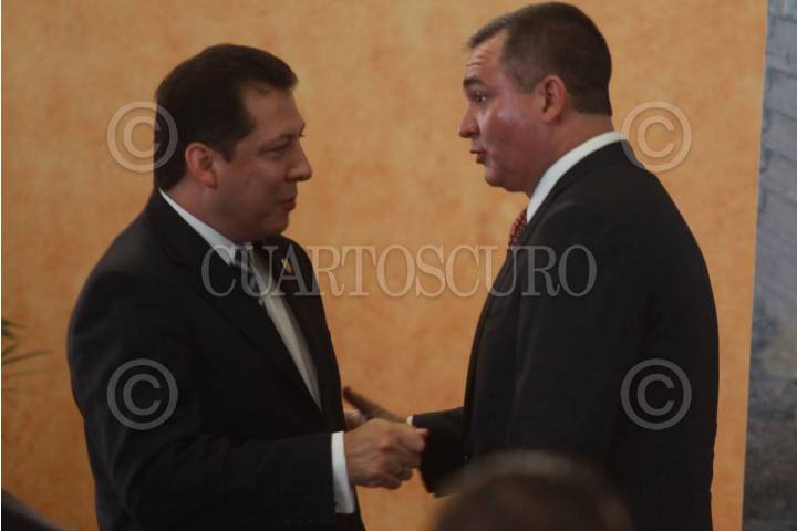MÉXICO, D.F., 08DICIEMBRE2009.- Genaro García Luna titular de la SSP Federal conversa con el ombudsman Raul Plasencia Villanueva, durante la entrega del Premio Nacional de Derechos Humanos 2009 FOTO: SÁSHENKA GUTIÉRREZ/CUARTOSCURO.COM