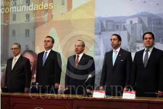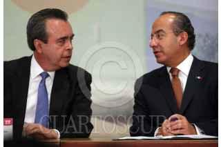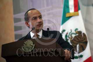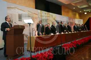 MÉXICO, D.F., 10DICIEMBRE2009.- Victor Manuel Borras Setien, Director General del Instituto del Fondo Nacional de la Vivienda para los Trabajadores (Infonavit) y Felipe Calderón Hinojosa, Presidente de México, durante la clausura de la 97 Asamblea General Ordinaria del Infonavit, que tuvo lugar en el salón Adolfo López Mateos de la Residencia Oficial de Los Pinos. FOTO: ALFREDO GUERRERO/CUARTOSCURO.COM