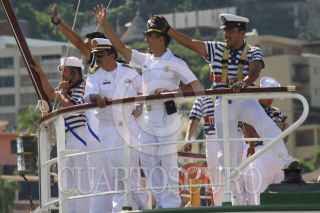 ACAPULCO , GUERRERO 11DICIEMBRE2009.- Tripulación de la escuela Velero de México que al mediodía zarpó de su puerto base donde se hizo a la mar nuevamente iniciando el crucero de instrucción Bicentenario 2010, el cual tendrá una duración de 212 días, por los mares de Centro Y Sudamérica. FOTO:SÁSHENKA GUTIERREZ/CUARTOSCURO.COM