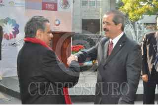 MÉXICO, D.F., 11DICIEMBRE2009.- Fidel Herrera Beltran, Gobernador del estado de Veracruz, saluda a José Angel Cordova Villalobos, Secretario de Salud, durante la puesta en marcha del programa de brigadas de prevención 2009, de la Red Nacional para la Prevención de la Discapacidad (Renapred). FOTO: EDUARDO MORALES/CUARTOSCURO.COM