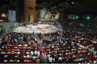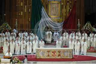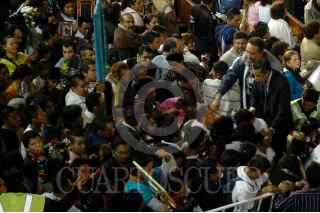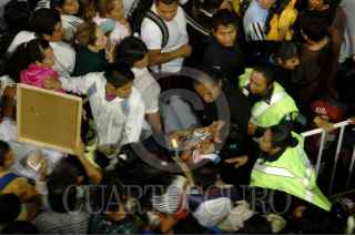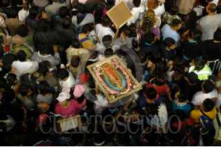 MÉXICO D.F., 12DICIEMBRE2009.- Cientos de peregrinos se amontonan en las entradas e incluso algunos se desmayan ya que intentan entrar a la Basilica de Guadalupe en este día que se celebra el 478 aniversario de su aparición en el cerro del Tepeyac. FOTO: RODOLFO ANGULO/CUARTOSCURO.COM